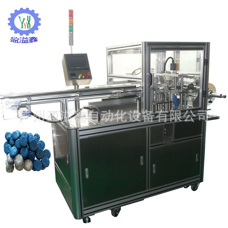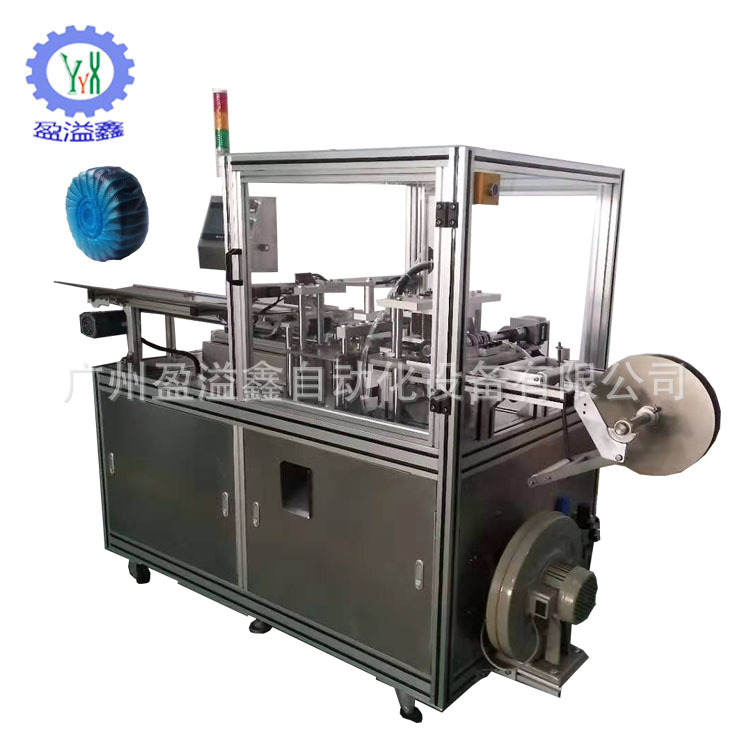该机器YN--760是专为包装圆形、菊花形中、高档蓝泡泡(马桶洁厕宝)而设计,可包装30 ~80g直径范围在35~65mm的各种规格圆形蓝泡泡,包装膜宽度范围在80~150mm,每种规格产品配一套模具,更换方便;可连接生产线,不连接生产线的情况下只需一人放料即可完成整个包装程序,使用方便,操作简单。
